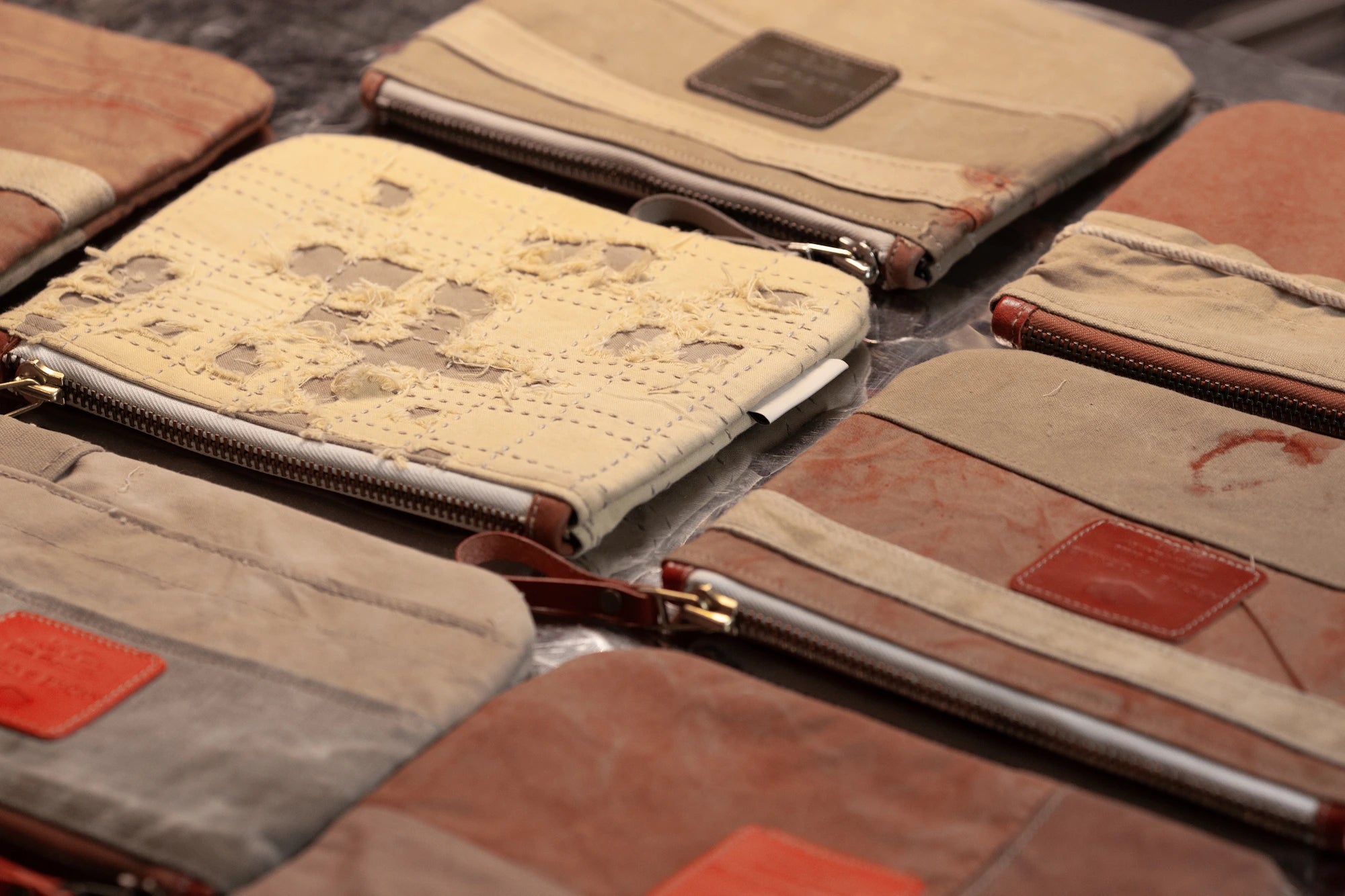 Constructed from a military tent fabrics, each piece is curated for maximum detail and cohesion.